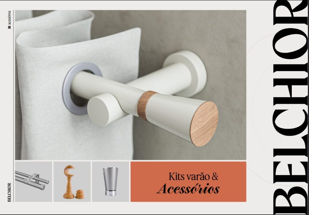 Este catálogo posiciona os Kits Varão & Acessórios como um componente essencial e não apenas um extra. É o produto que garante a satisfação total do cliente, pois assegura a instalação perfeita das cortinas.