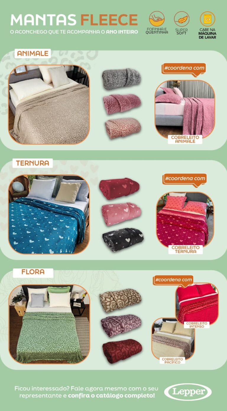 Lançamento linha 2025 de mantas da Lepper. Modelos com cores extraordinárias e que combinam com a linha de cobre leito Lepper.
