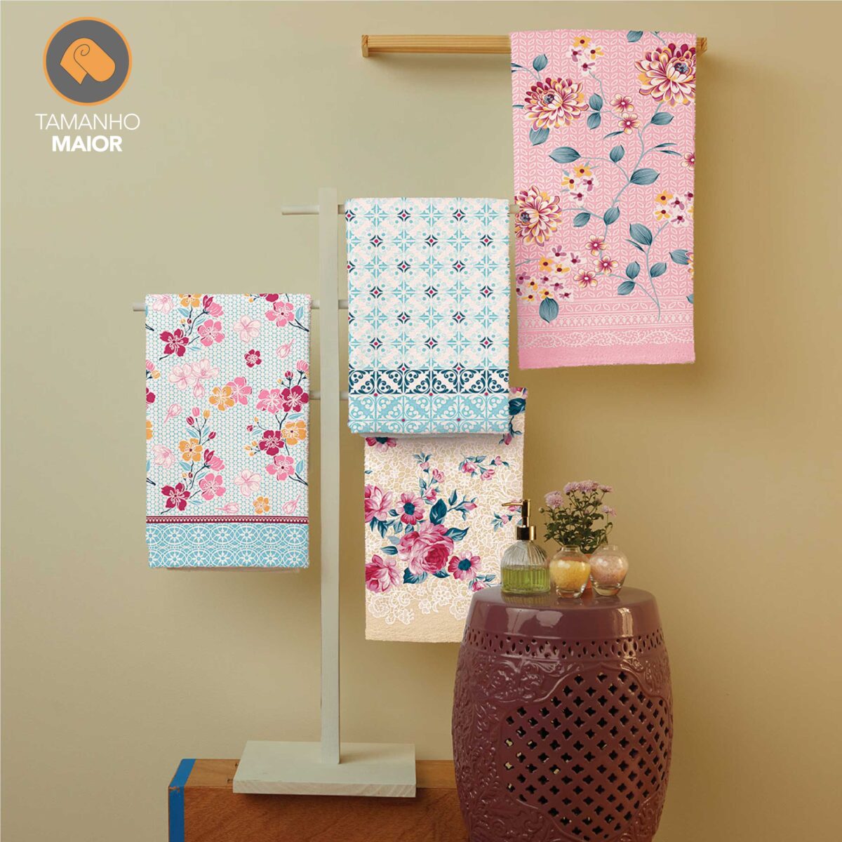 Início / Lepper / Home / Pacote com 3 Toalhas de Banho Felpuda Estampada Florada 75×150
